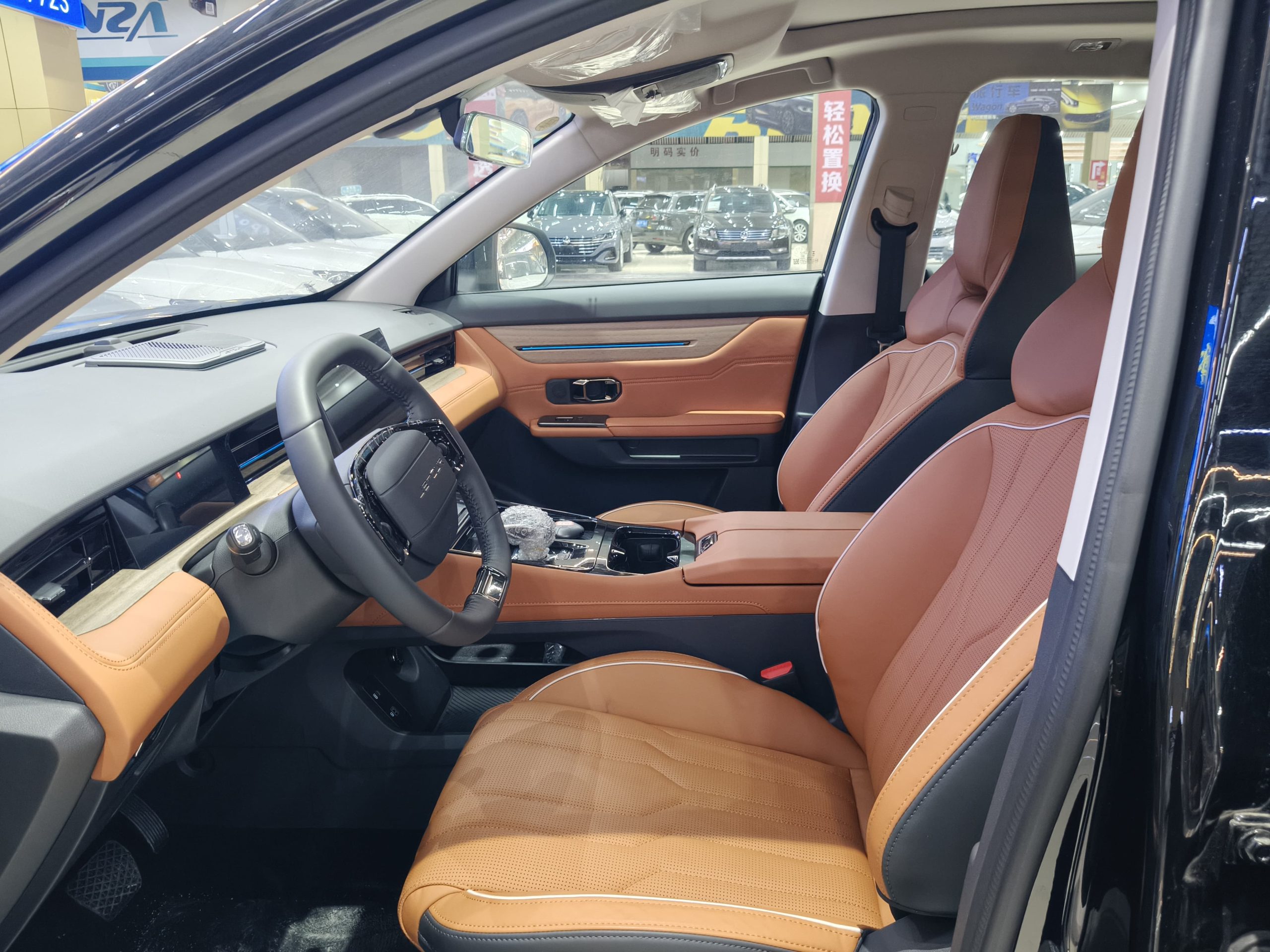The standard 12.8-inch floating central control screen integrates HUAWEI HiCar mobile connectivity, AutoNavi map navigation, and voice recognition control. The 9.2-inch full LCD instrument panel displays real-time driving information with a simple and intuitive interface. The sporty-style imitation leather seats feature power adjustment, ventilation, and heating for the driver's seat, along with a heated leather steering wheel for added winter comfort. Rear air vents and a PM2.5 filter create a comfortable driving environment. The vehicle's body is 78% constructed of high-strength steel and is equipped with safety features such as tire pressure display, child seat interface, 360-degree panoramic imaging, and cruise control. Mobile app remote control (door unlocking/locking, air conditioning activation, vehicle status query), keyless start, and a Wi-Fi hotspot enhance user convenience.