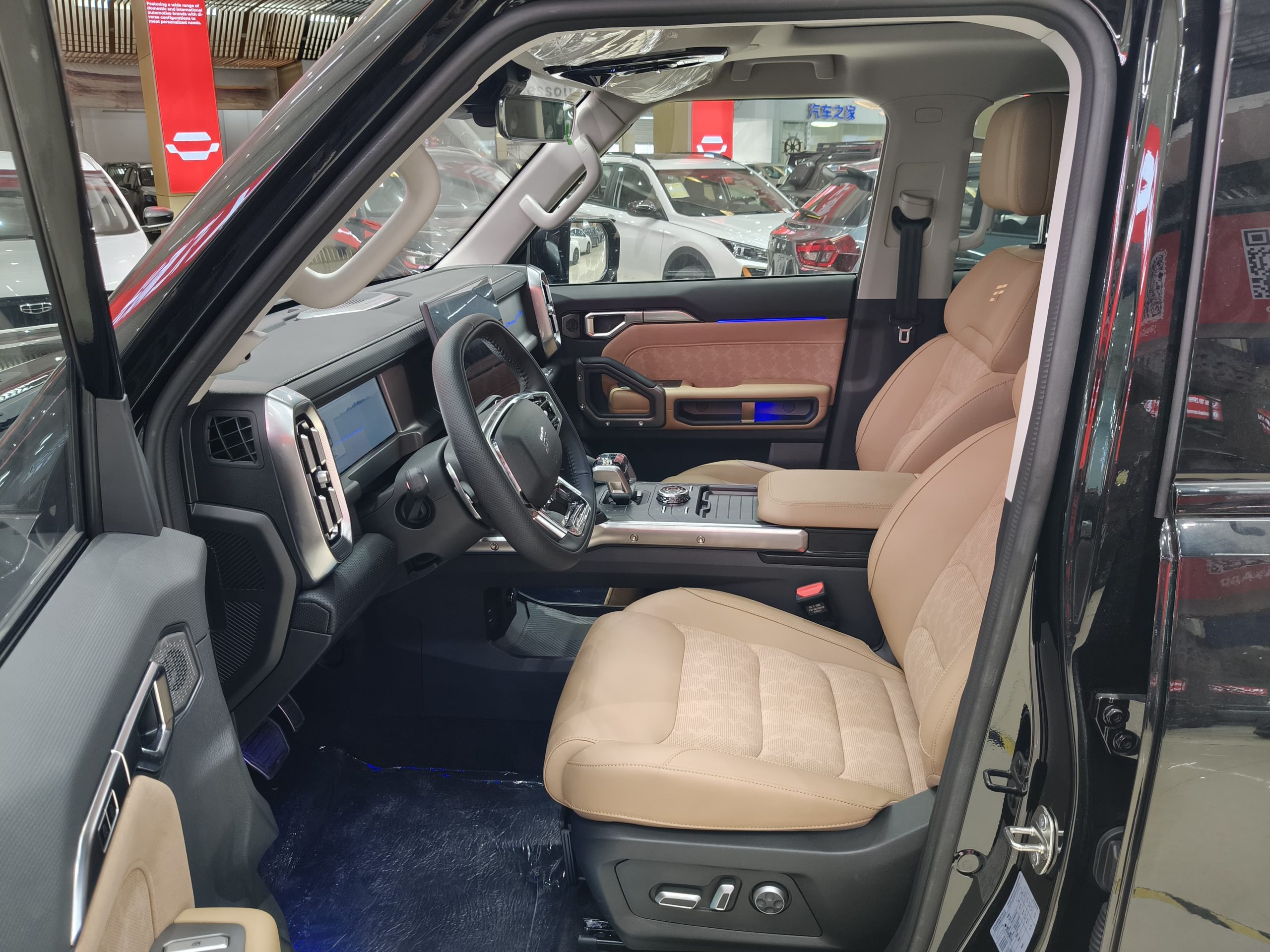 The Kunpeng 2.0T+8AT combination delivers 187kW (254 horsepower) and 390Nm of torque across a wide 1750-4000rpm rev range, accelerating from 0 to 100km/h in just 8.5 seconds, perfect for both urban commuting and off-roading. BorgWarner's sixth-generation XWD intelligent all-wheel-drive system intelligently switches between two-wheel drive and four-wheel drive in 0.15 seconds, enabling continuous, variable rear-axle torque distribution from 0 to 100%. Combined with 7+X one-touch off-road modes (including a new sand mode), it easily handles seven challenging terrains, including snow, mud, and rocks. Off-road hardware includes a 28° approach angle, a 30° departure angle, a 220mm minimum ground clearance, and a 700mm wading depth. With optional automatic tires and a full-size spare tire, the vehicle is ready for moderate off-roading in stock condition.