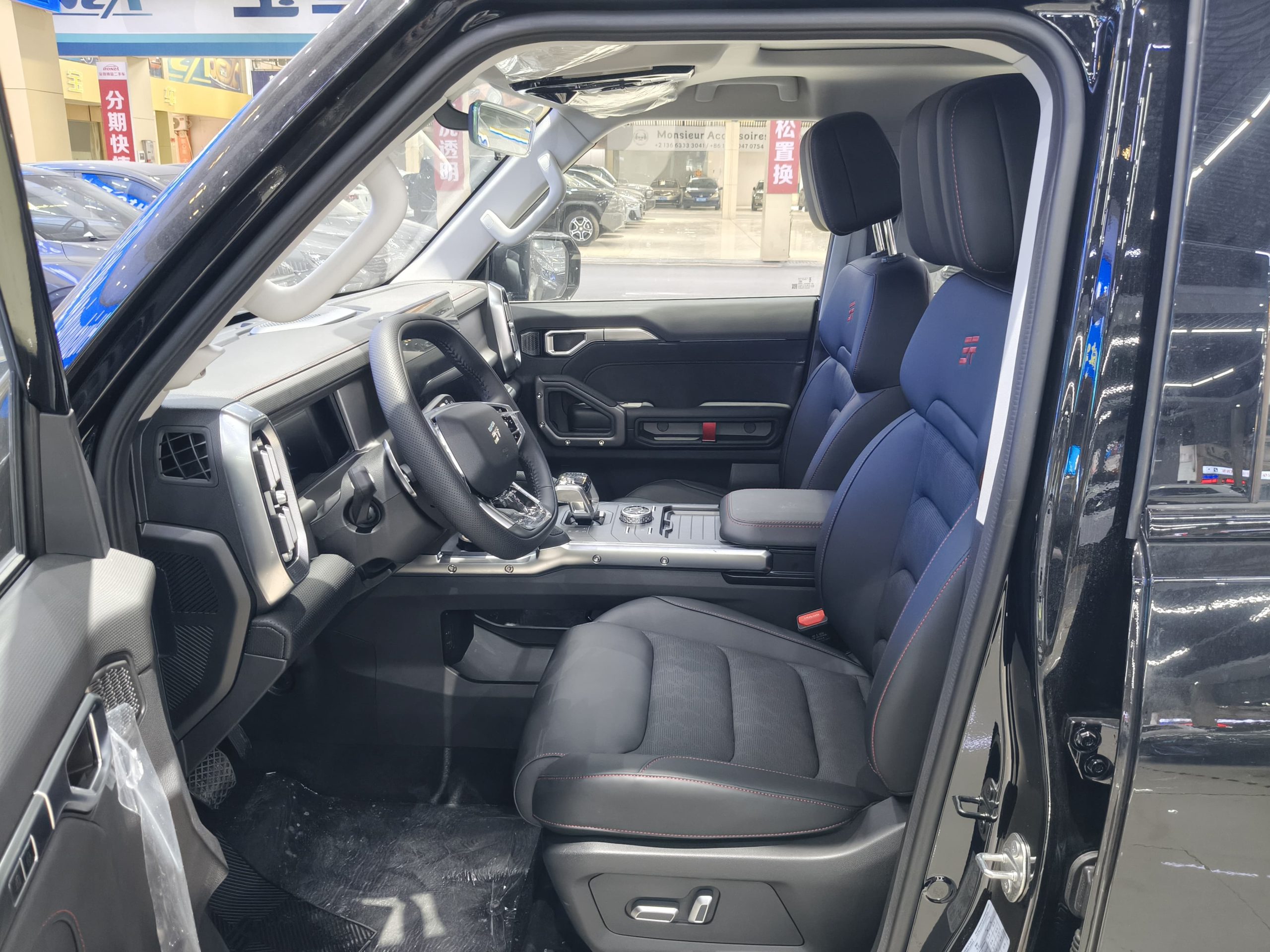 Powered by a Qualcomm Snapdragon 8155 processor and a massive 15.6-inch central control screen, the vehicle boasts smartphone-like smoothness, supporting CarPlay and HUAWEI HiCar mobile connectivity. Voice recognition controls navigation, climate control, windows, and other functions, with support for four-zone wake-up and continuous commands. A new G318 route trim panel with ambient lighting creates an off-road ambiance at night, and the passenger side trim panel can be tuned to music, enhancing driving pleasure. The driver's seat features six-way power adjustment, finished in a subtle black and red imitation leather with a refined touch. An opening panoramic sunroof enhances the interior's airiness, while automatic dual-zone air conditioning with rear air vents allows rear passengers to adjust the temperature on demand during long journeys. The leather-wrapped steering wheel adjusts up and down, forward and backward, and features paddle shifters, ensuring optimal control and comfort. Standard features include a 540° panoramic camera (including a transparent chassis), cruise control, fatigue monitoring, and a tire pressure display. New features include reverse cross-traffic alert and lane change assist for enhanced safety in complex road conditions. The vehicle body adopts an 80% high-strength steel cage structure with a torsional rigidity of 31,000N·m/deg and a roof compression resistance of 147kN, providing five-star safety protection.