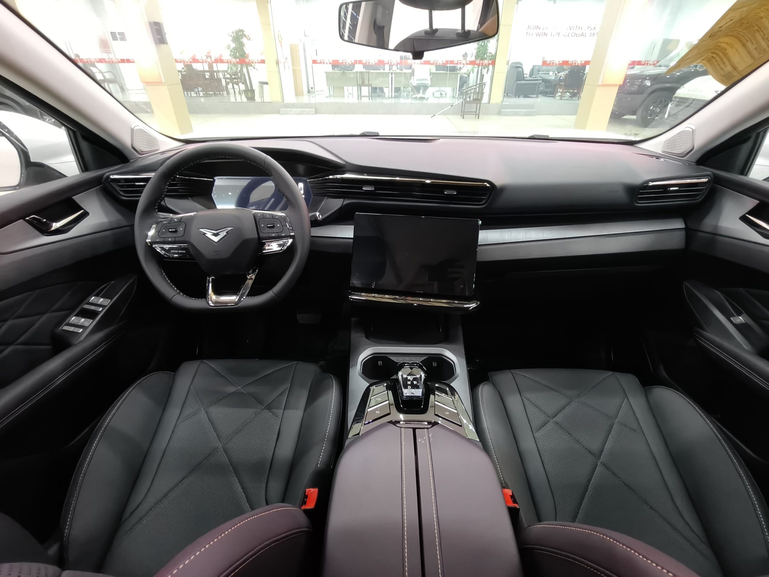 Adopting a "mountain, sea, and stars" design language, the front "Triumphal Wing" breathing lights create a dynamic light curtain based on the 0.618 golden ratio, making them highly recognizable at night. The combination of through-the-loop time-space ring taillights and 18-inch aluminum alloy wheels, along with the widest-in-class 1968mm body and slender 4738mm wheelbase, creates a sporty and poised stance. Details such as the concealed door handles and shark fin antenna enhance the vehicle's streamlined appearance, balancing business-like stability with a youthful aesthetic.