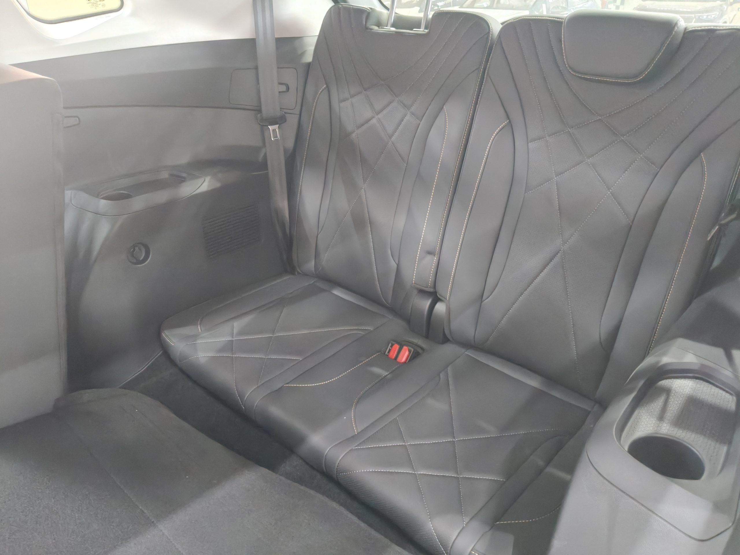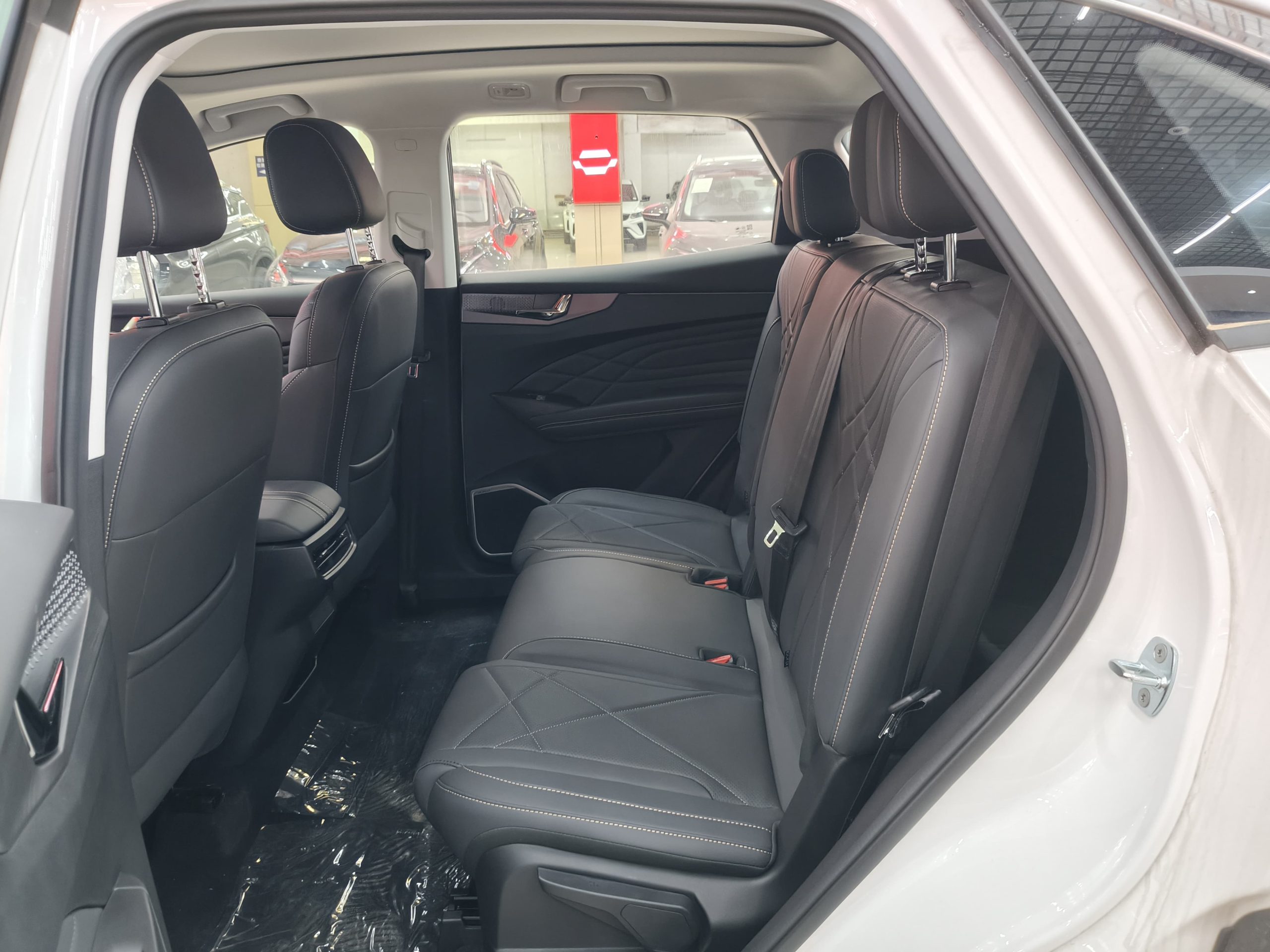 The 2820mm ultra-long wheelbase features a 2+3+2 seating configuration for seven seats, achieving a 68.7% longitudinal space utilization rate and 980mm of rear legroom, allowing for third-row passengers up to 1.75 meters tall. The trunk boasts a regular capacity of 518L, expanding to 1566L with the rear seats folded down in a 40:60 split, allowing for ample storage for strollers, bicycles, and other large items. The 1968mm width comfortably accommodates three adults in the second row, and the retractable panoramic sunroof (illuminating 1.1 square meters) creates an airy and comfortable passenger experience.